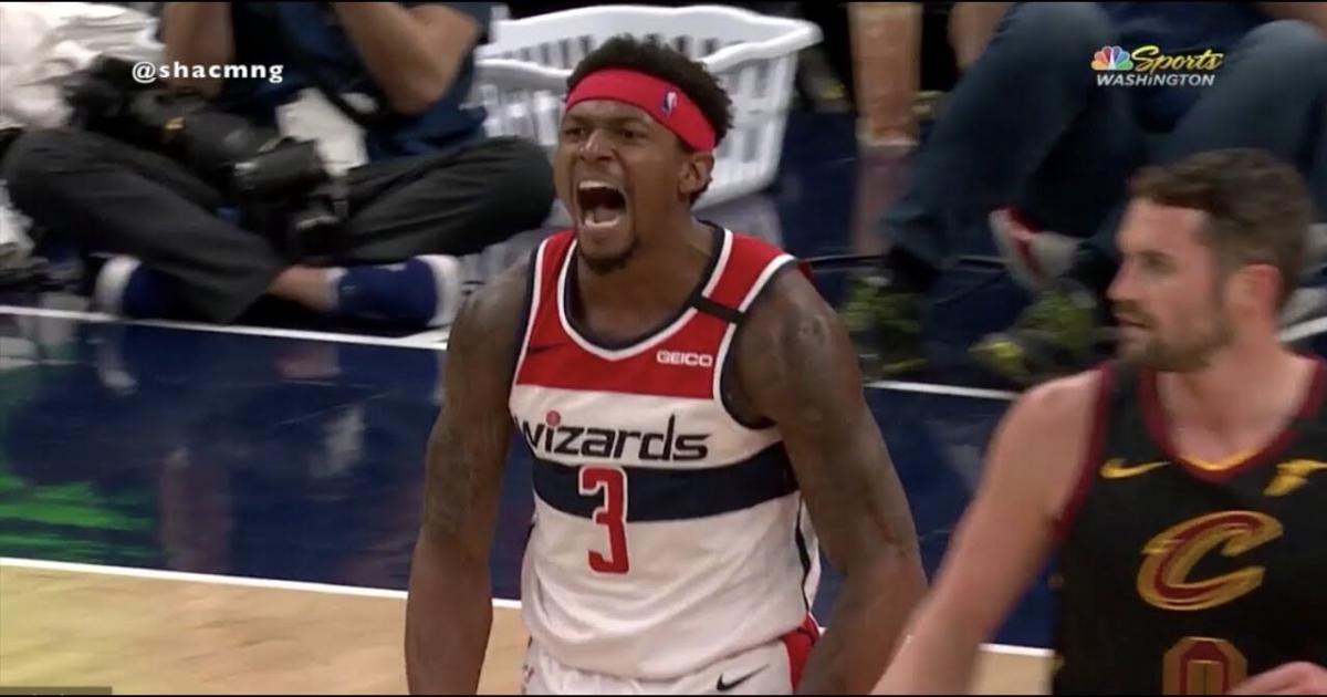 Атакующий защитник «Вашингтона» Брэдли Бил в 3-й четверти матча с «Кливлендом» ворвался в трехсекундную зону и вколотил сверху через центрового соперника Андре Драммонда.