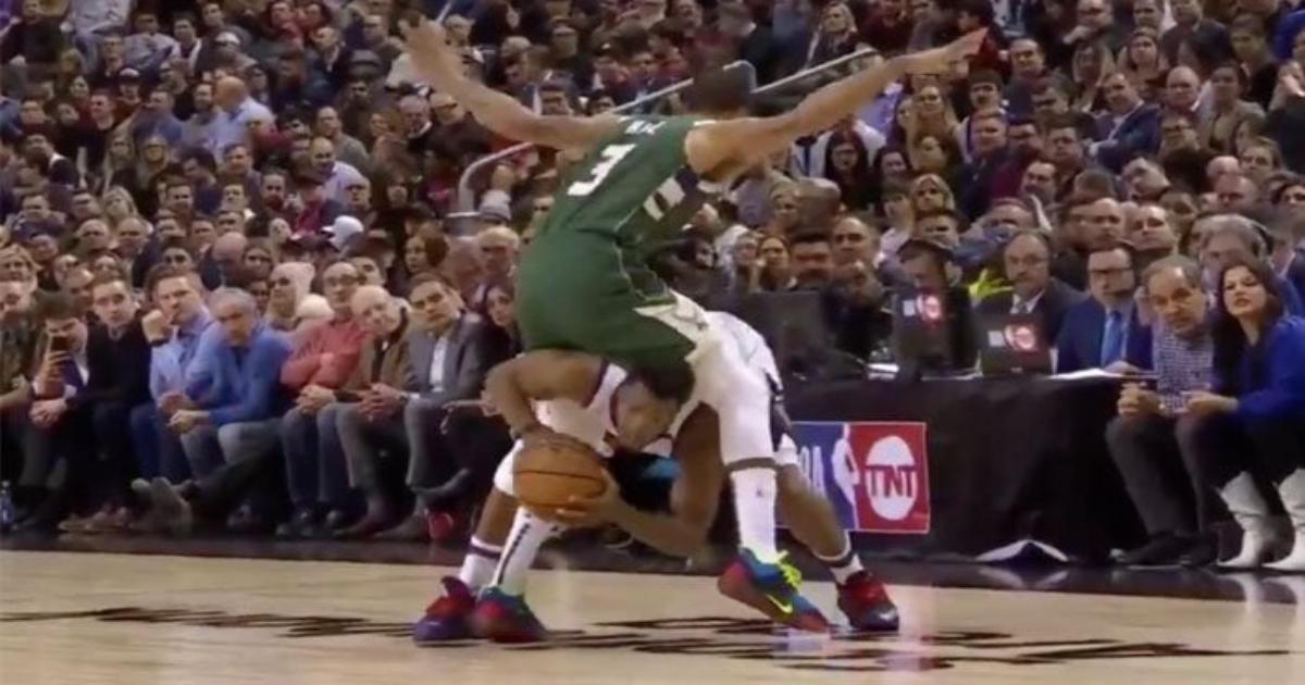 Разыгрывающий «Торонто» Кайл Лаури в одной из атак в матче с «Милуоки» попытался пролезть между ног Джорджа Хилла. Игроку не удалось совершить задуманное, и он получил фол в нападении.