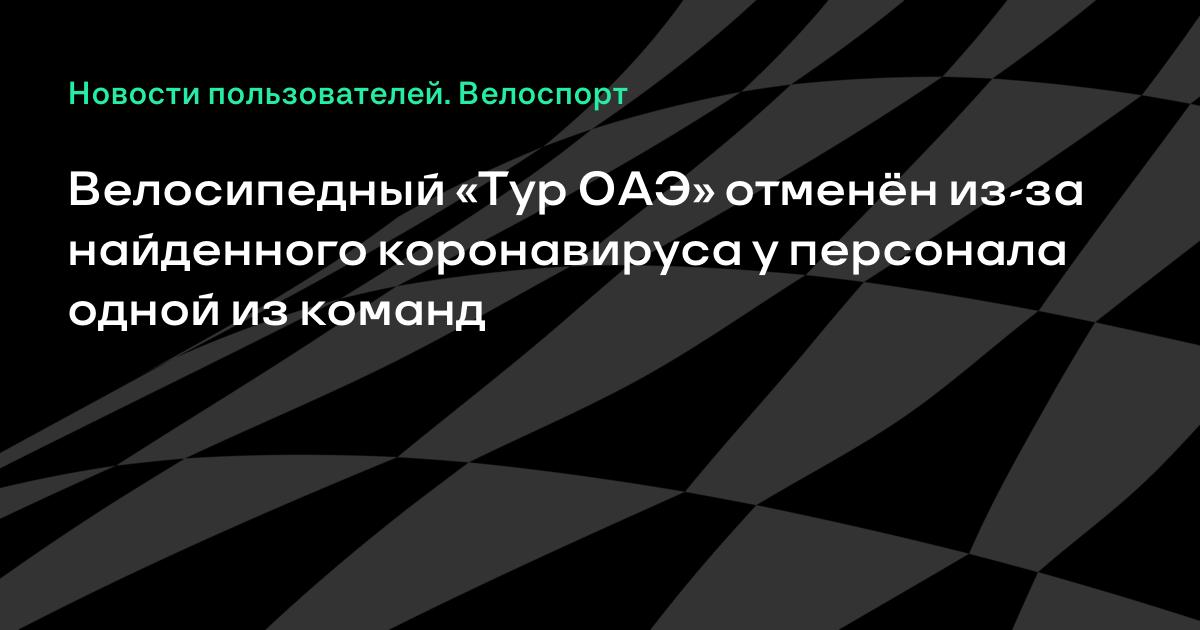 Организаторы «Тура ОАЭ» (UAE Tour) вечером 27 февраля объявили об отмене оставшихся двух этапов велогонки из-за обнаруженного у двух членов одной из команд — итальянцев — коронавируса Covid-19. При этом ни команда, ни имена людей не называются.