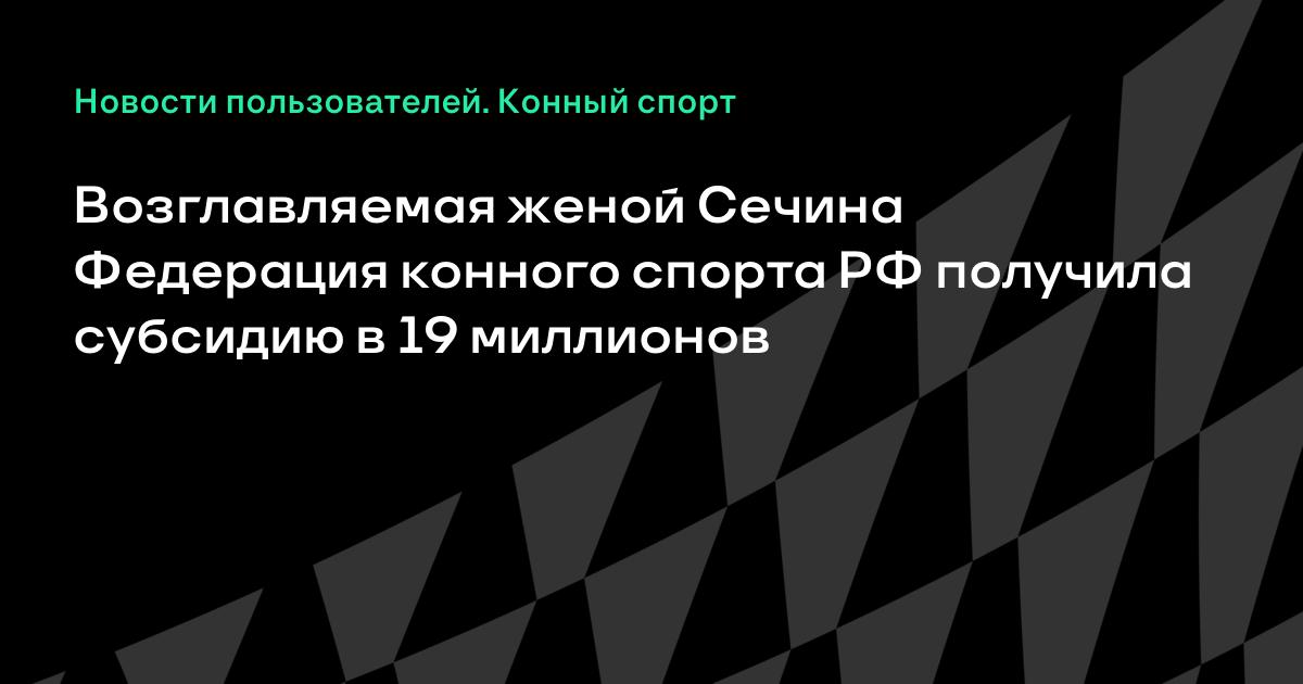 Возглавляемая женой Сечина Федерация конного спорта РФ получила субсидию в 19 миллионов