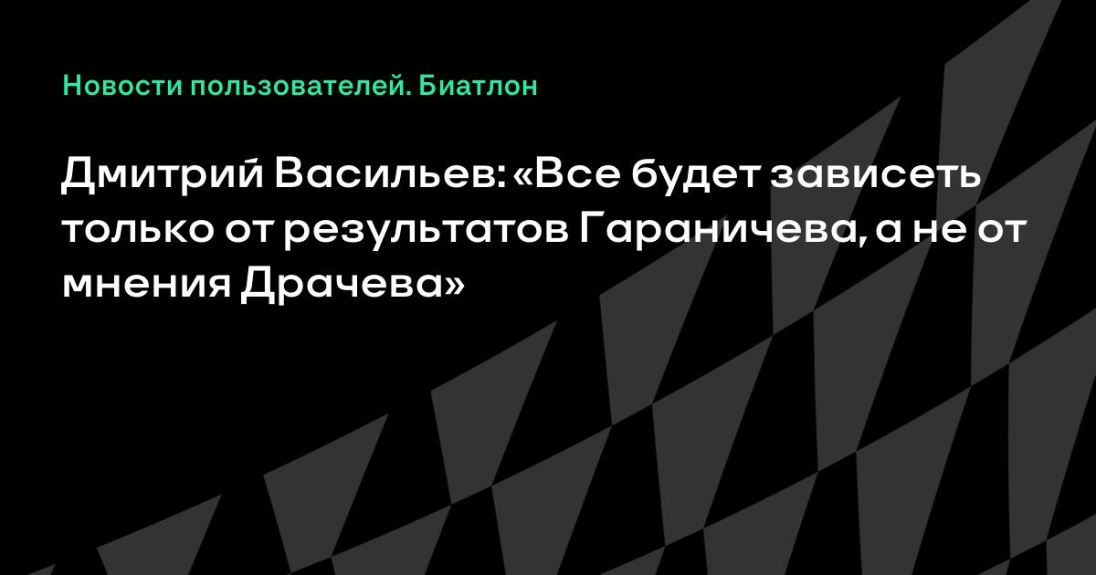 Двукратный олимпийский чемпион Дмитрий Васильев оценил слова президента Союза биатлонистов России (СБР) Владимира Драчева о бронзовом призере Олимпийских игр Евгении Гараничеве. Драчев сказал: «Возможно, его время проходит».