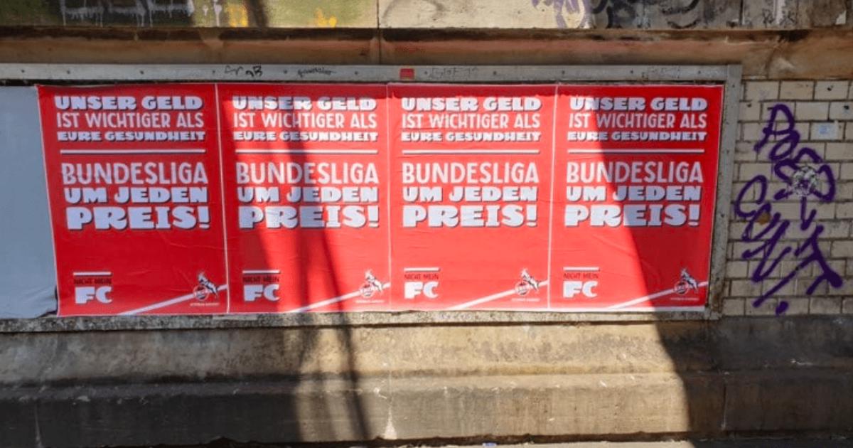 «Наши деньги важнее вашего здоровья. Бундеслига любой ценой!». Фанаты расклеили плакаты в Кельне