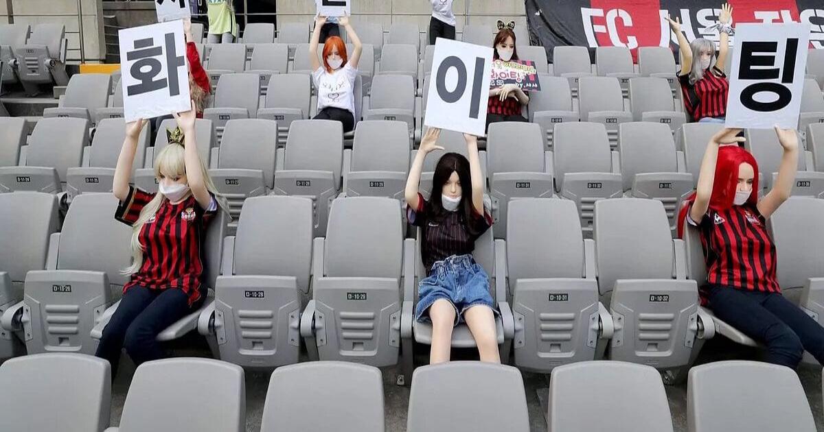 В Южной Корее заполнили трибуны секс-куклами в масках. В клубе настаивают, что это просто манекены
