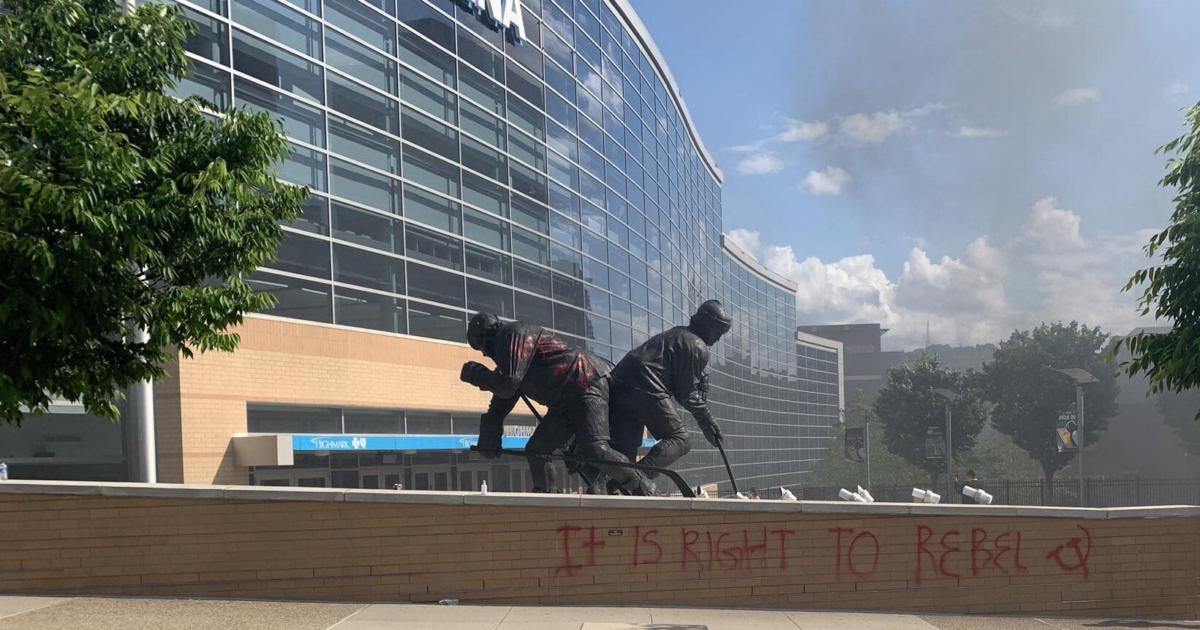 Во время массовых протестов в Питтсбурге на постаменте статуи Марио Лемье у арены хоккейного клуба появилась надпись «Право на восстание».