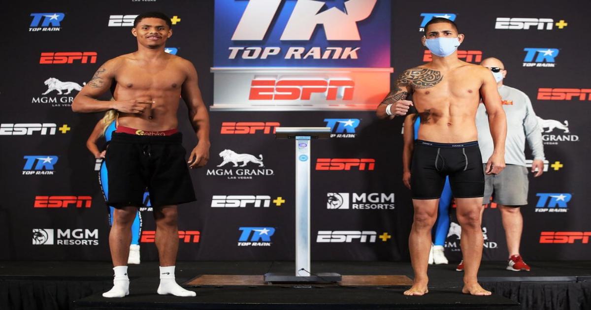 Safe, socially distanced weigh-ins = ✅@ShakurStevenson stayed ready for 3 months, and is set for his Super Featherweight debut Tuesday night 😤#StevensonCaraballo | ESPN | @GEICO pic.twitter.com/Y9NsMXN67N