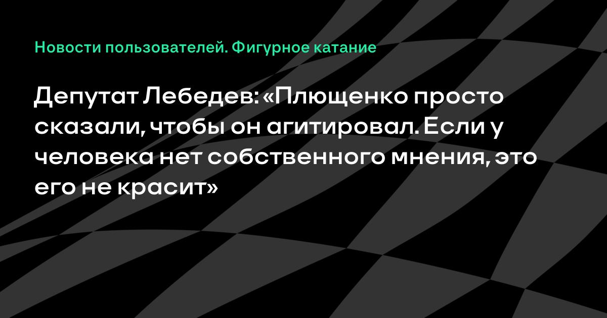 Депутат Лебедев: «Плющенко просто сказали, чтобы он агитировал. Если у человека нет собственного мнения, это его не красит»