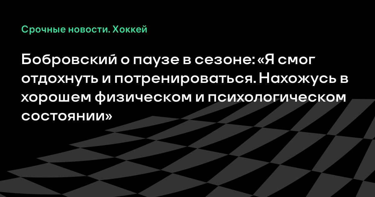 Пауза в сезоне? Я смог отдохнуть и хорошенько потренироваться. Я нахожусь в хорошем физическом и психологическом состоянии. Рад, что у меня есть такая возможность», – сказал Бобровский.