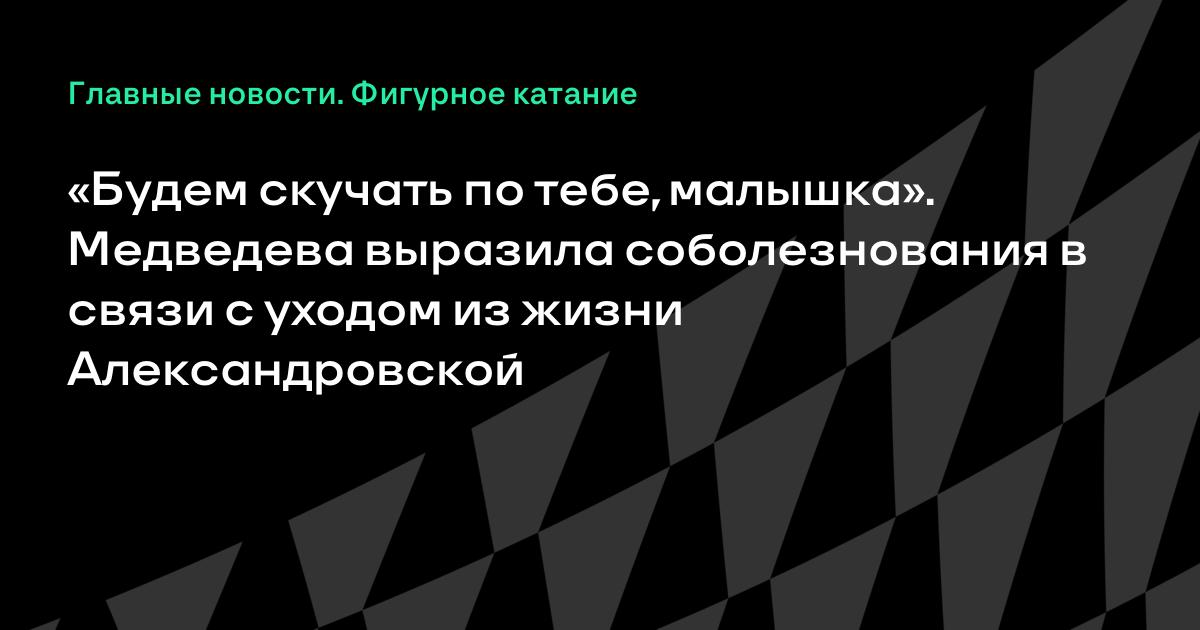 Двукратный серебряный призер Олимпийских игр Евгения Медведева выразила соболезнования в связи с уходом из жизни 20-летней чемпионки мира среди юниоров в парном катании Екатерины Александровской.