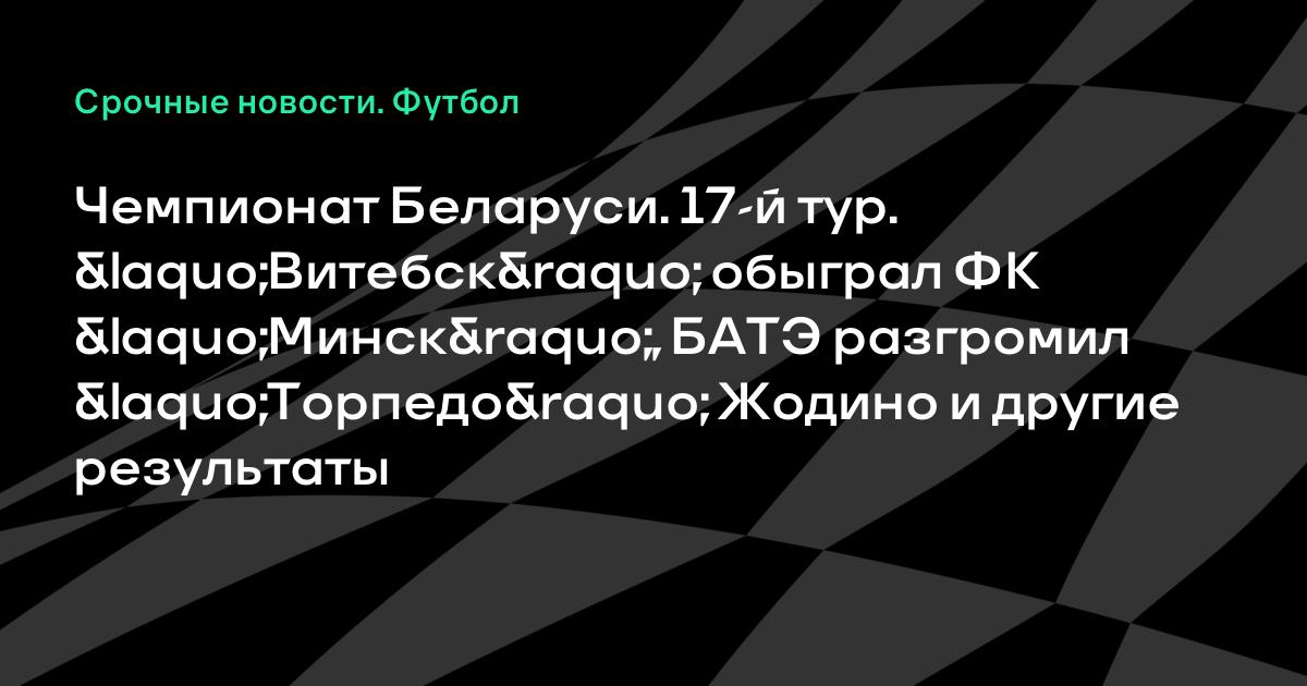 Чемпионат Беларуси. 17-й тур. «Витебск» обыграл ФК «Минск», БАТЭ разгромил «Торпедо» Жодино и другие результаты