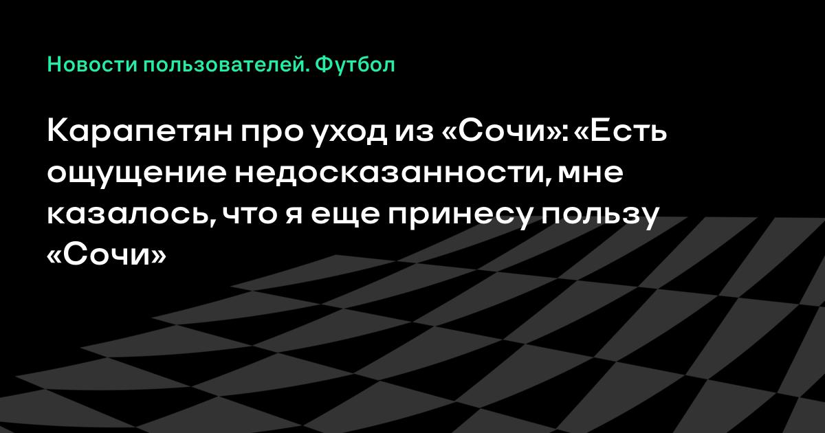 Конечно, есть ощущение недосказанности, мне казалось, что я еще принесу пользу клубу. Могу сказать, что я был в отличной форме, хорошо тренировался, старался эффективно использовать свое игровое время, но тренер делал очень мало замен. Футболист не может быть доволен тем, что играет 5 или 10 минут. Я уверен, что я бы мог дать «Сочи» больше, если бы мне давали больше игрового времени. Но я получал слишком мало времени на поле, я способен на большее, жаль, что я не смог показать 100% Карапетяна. Я всегда выходил в футболке «Сочи» с особым настроем и бился за клуб, но это футбольная жизнь и она у меня продолжается. Ребята сказали, что я был душой команды, немного грустно, но я уверен, что я еще покажу себя, и многие обо мне еще вспомнят», — сказал Карапетян в беседе с корреспондентом Sport24 Араратом Мамбреяном.
