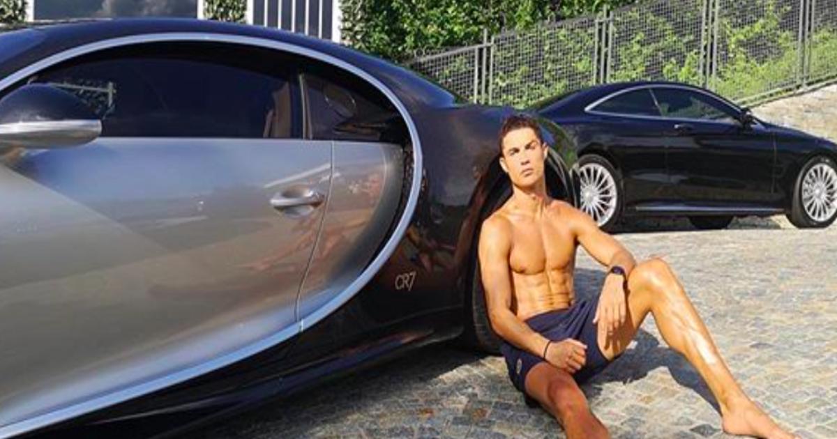 35-летний португалец показал, как сидит в шортах и опирается спиной на спорткар Bugatti Chiron. На заднем фоне виден Mercedes.