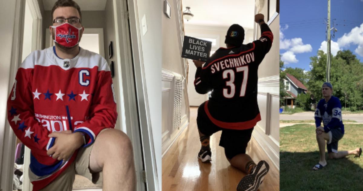 If it’s true that #HockeyIsForEveryone, then we need to #Kneel4Hockey. My friends and I started kneeling after Colin Kaepernick first kneeled and if the NHL players still won’t do it at this point, we will continue anyway because #BlackLivesMatter. pic.twitter.com/HLRGitKFAT