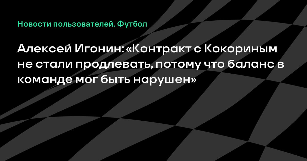 Алексей Игонин: «Контракт с Кокориным не стали продлевать, потому что баланс в команде мог быть нарушен»