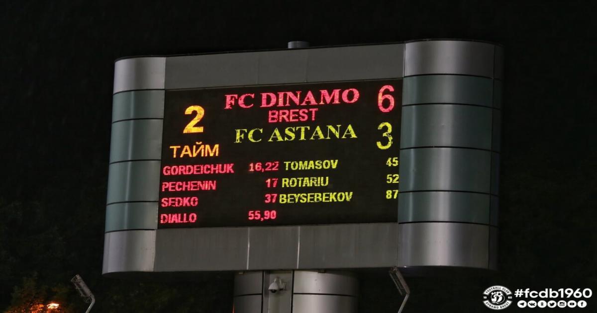 «Астана» вылетела из Лиги чемпионов, уступив в 1-м квалификационном раунде брестскому «Динамо» (3:6).