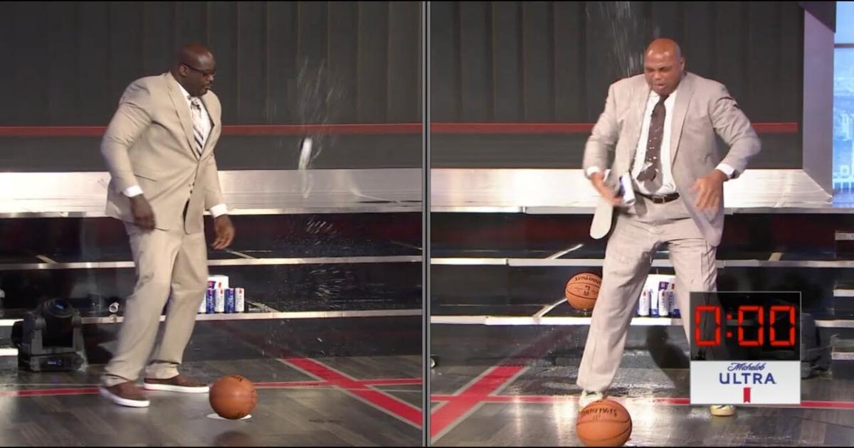 Бывшие звезды НБА, ныне телеведущие «NBA on TNT» Шакил О’Нил и Чарльз Баркли поучаствовали в «Basketball Beer Challenge» – челлендже с баскетбольным мячом и банкой пива.