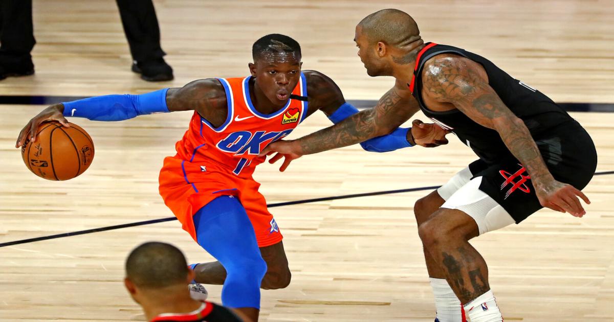 Разыгрывающий «Оклахомы» Деннис Шредер во 2-й четверти матча с «Хьюстоном» отдал потрясающую передачу на Лугенца Дорта в разрез с отскоком от пола.