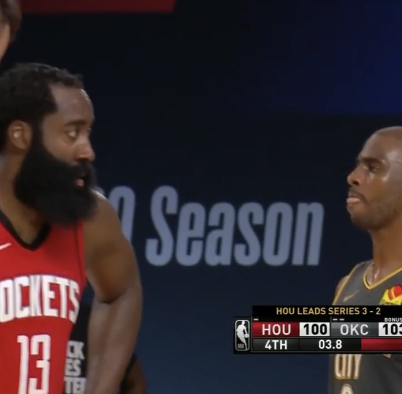 Крис Пол смерил взглядом Джеймса Хардена на последних секундах 6-го матча