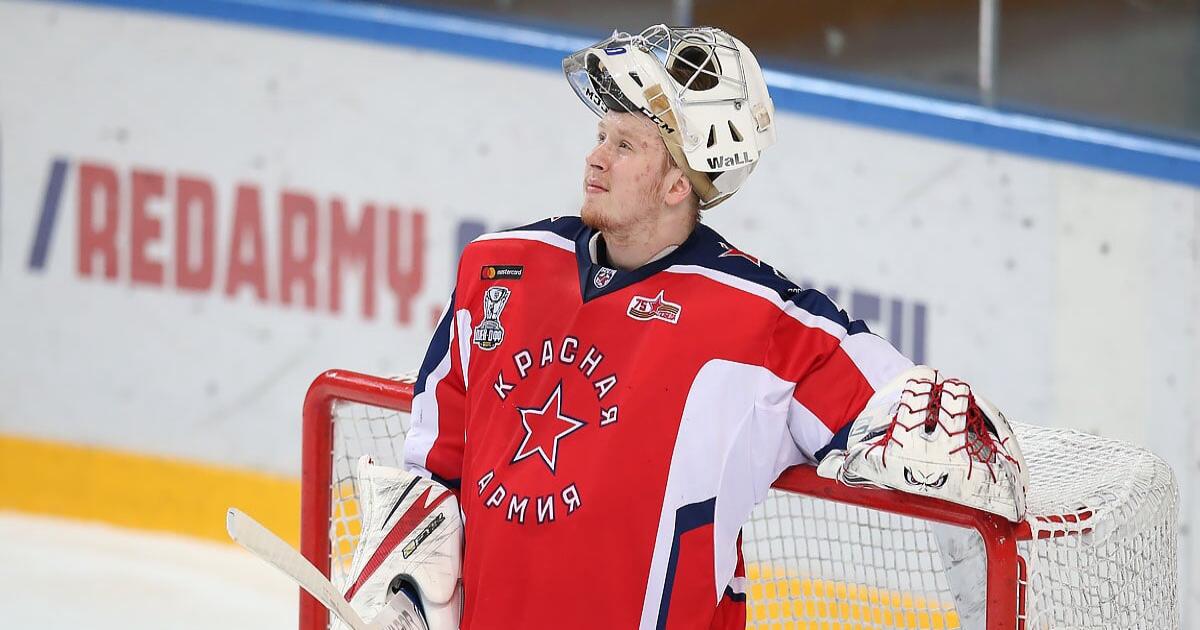 18-летний вратарь ЦСКА Скотников отразил 20 бросков и одержал победу в дебютном матче в КХЛ