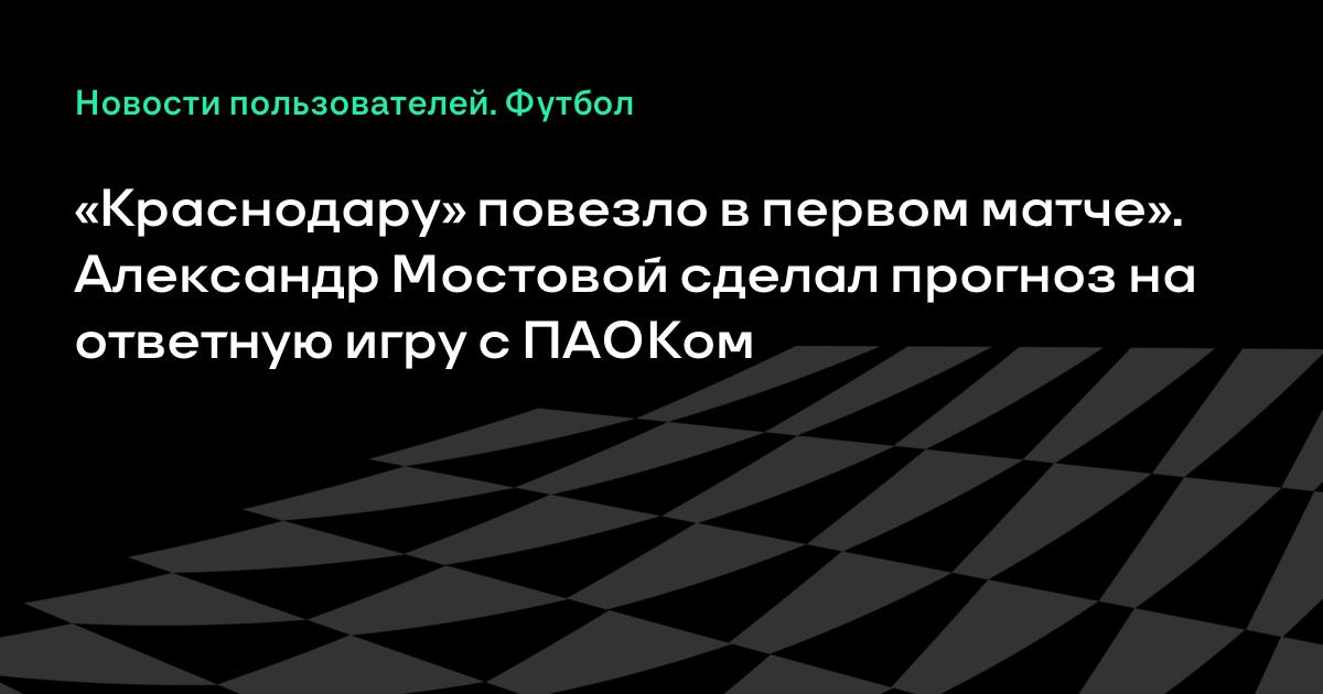 Прогноз? Мне кажется, что будет 1:0 или 2:1. Все равно у «Краснодара» шансы будут. Я посмотрел: в игре против ПАОК играло девять иностранцев. Если бы играл Мартынович, а не Сорокин, то было бы вообще десять. Шансы будут у «Краснодара», в любой игре есть шансы. ПАОК — это же не «Олимпиакос» или еще кто-то. Это хорошая команда, но и у тебя есть преимущество в виде победы», — сказал Мостовой в беседе с корреспондентом Sport24.