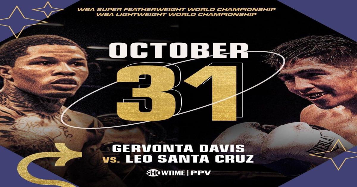 3-time champ #GervontaDavis vs. 4-division champ #LeoSantaCruz headline the first major boxing event with fans in attendance since March.#DavisSantaCruz 4-fight PPV Halloween LIVE at 9PM ET. pic.twitter.com/g1QFWtIM8h