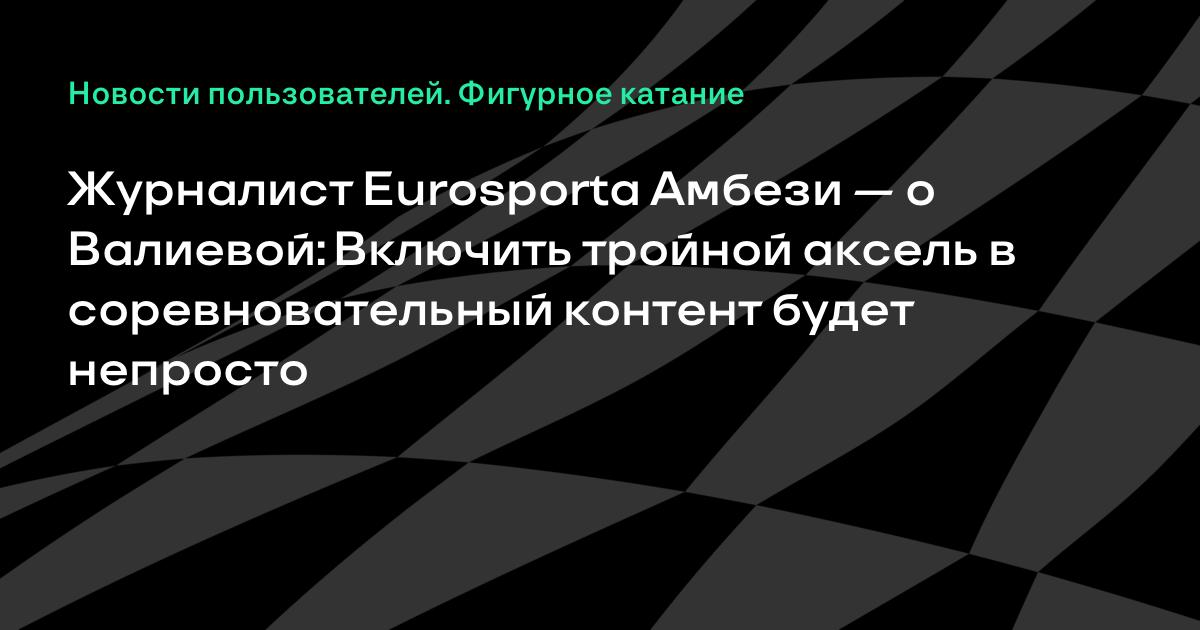 Журналист Eurosporta Амбези — о Валиевой: Включить тройной аксель в соревновательный контент будет непросто