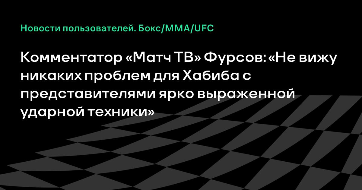 Комментатор «Матч ТВ» Фурсов: «Не вижу никаких проблем для Хабиба с представителями ярко выраженной ударной техники»