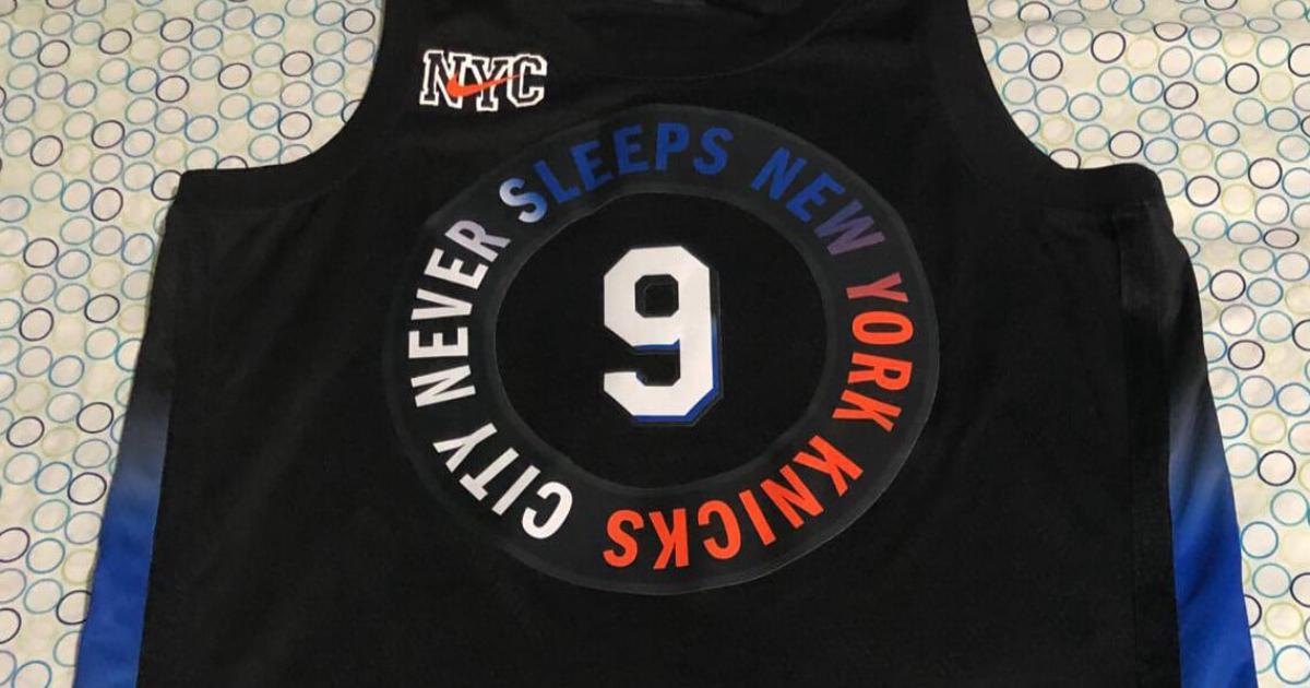 В центре игровой майки расположена надпись: «Нью-Йорк Никс. Город, который никогда не спит».