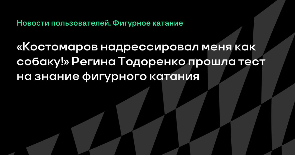 «Костомаров надрессировал меня как собаку!» Регина Тодоренко прошла тест на знание фигурного катания