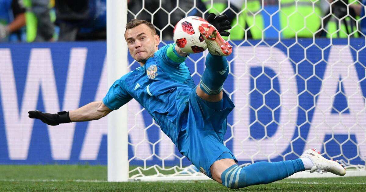 Акинфеев ногами отбил удар Еременко с пенальти. Судья указал на точку после ВАР