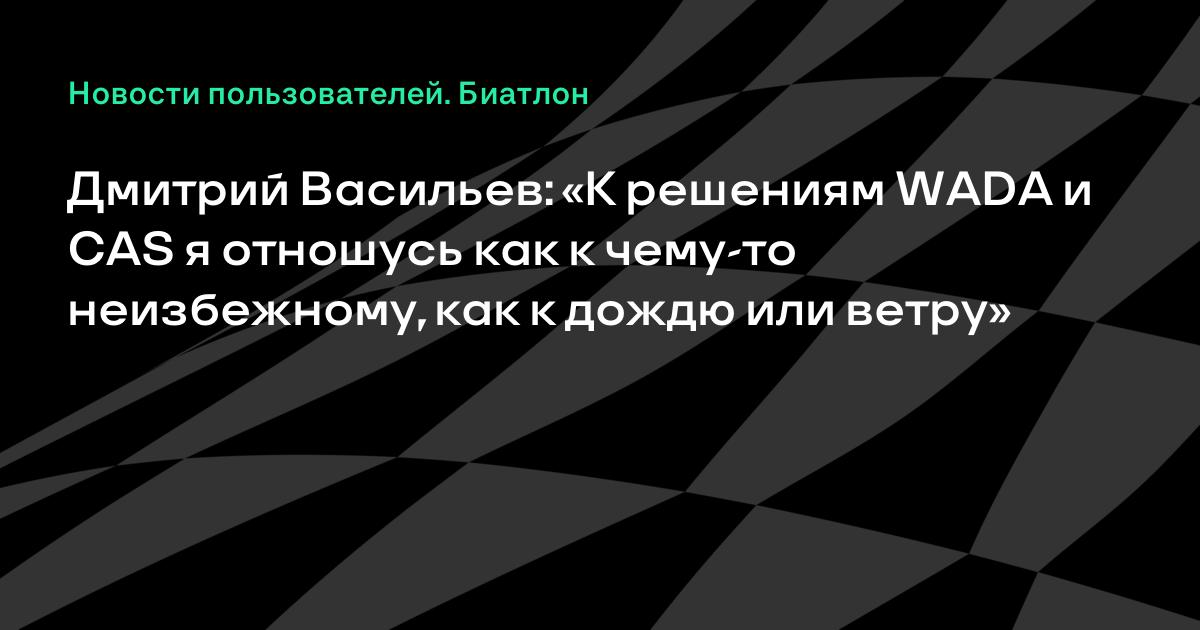 Дмитрий Васильев: «К решениям WADA и CAS я отношусь как к чему-то неизбежному, как к дождю или ветру»