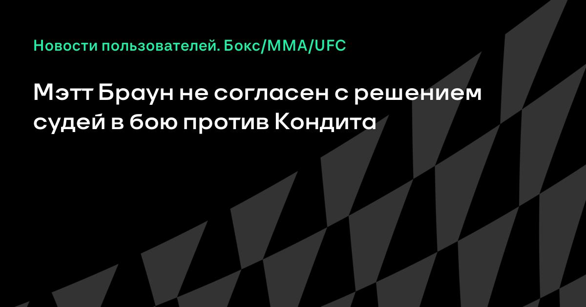 Поединок прославленных ветеранов полусреднего веса Карлоса Кондита (32–13) и Мэтта Брауна (22–18), который состоялся сегодня ночью, завершился победой Кондита по очкам на карточках всех судей, но Браун, похоже, не согласен с их вердиктом.