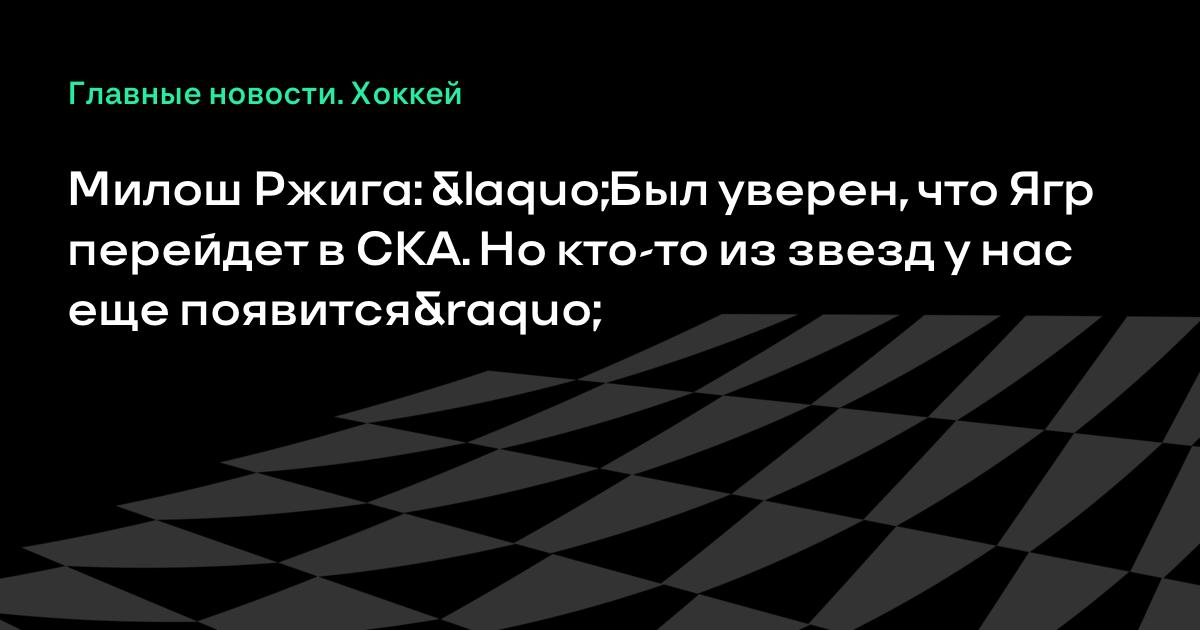 - Еще недавно был уверен на 80–90%, что за СКА будет выступать Яромир Ягр. Мы несколько раз говорили, встречались на чемпионате мира в Словакии. И условия контракта были согласованы. Но в последний момент Ягр принял решение вернуться в НХЛ. Видимо, хочет завершить карьеру там, где вырос в игрока мировой величины. Жаль. Но кто-то из звезд наверняка в СКА появится», – приводит слова Ржиги газета «Известия».