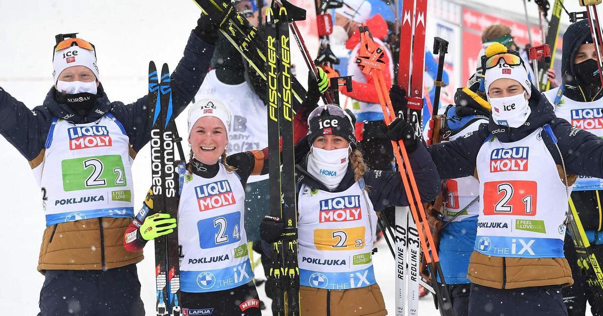 Норвежские биатлонисты прокомментировали звуковые эффекты, которые в отсутствие публики сопровождали спортсменов во время смешанной эстафеты на чемпионате мира в Поклюке.
