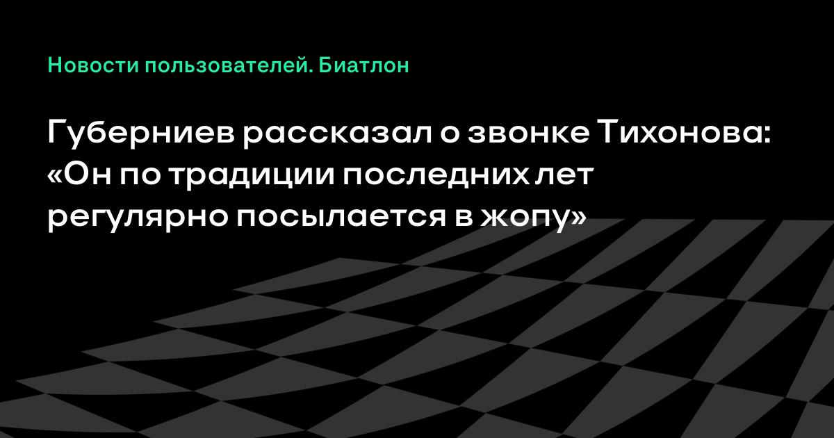 Спортивный комментатор Дмитрий Губерниев прокомментировал звонок олимпийской чемпионки по биатлону Анфисы Резцовой, а также рассказал о звонке бывшего главы Союза биатлонистов России Александра Тихонова.