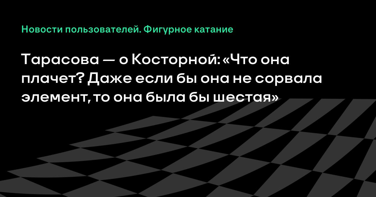 «Валиева — первая! Оценю ее прокат очень высоко. Если говорить о Косторной, то вы ее спросите. Что она плачет? Она шестая, что не так? Не надо плакать. Даже если бы она не сорвала элемент, то она была бы шестая. Думаю, судьи сегодня оценивали все правильно», — сказала Тарасова.