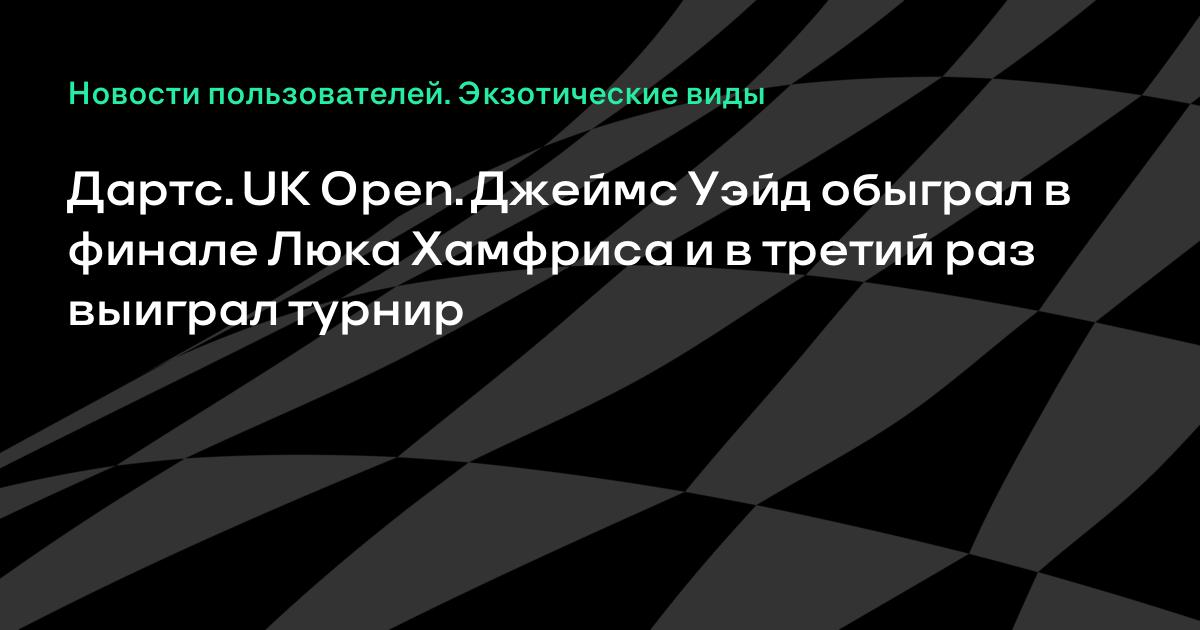 Дартс. UK Open. Джеймс Уэйд обыграл в финале Люка Хамфриса и в третий раз выиграл турнир