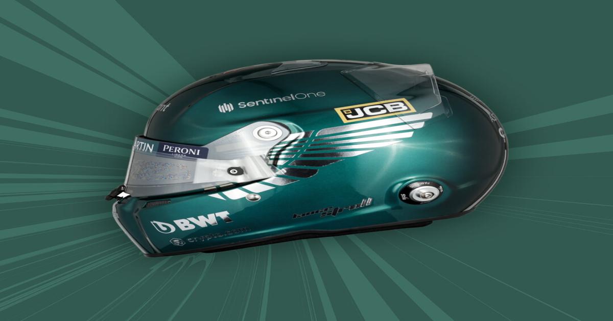 Для шлема Стролл выбрал зеленый цвет и крылья с логотипа компании.