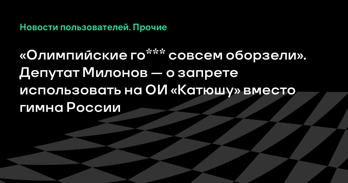 Эти олимпийские го**** уже оборзели совсем. И так уже никому эти игры не нужны: без зрителей, без флага, с каким-то дистанционным болением. Пусть сами играют в свои Олимпийские игры, а у нас Шойгу на границе в танковый биатлон поиграет», — сказал Милонов