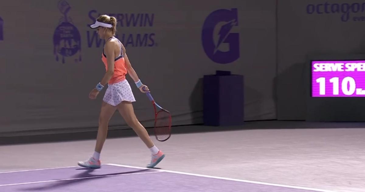 Сначала канадка выбила мяч за пределы стадиона при счете 40:40, а, проиграв брейк-пойнт, она сломала ракетку. К тому моменту она упустила семь брейк-пойнтов и дважды проиграла свою подачу.