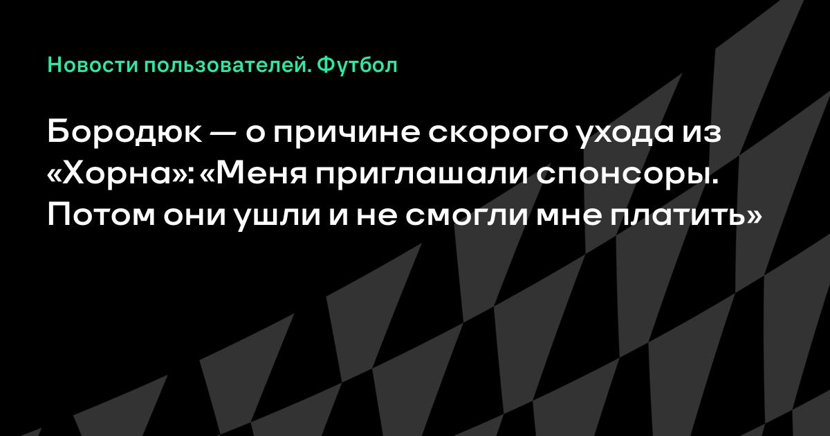 Бородюк — о причине скорого ухода из «Хорна»: «Меня приглашали спонсоры. Потом они ушли и не смогли мне платить»