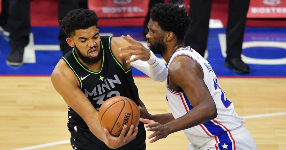 Центровые Джоэл Эмбиид («Филадельфия») и Карл-Энтони Таунс («Миннесота») обменялись грубыми фолами во время субботнего матча между своими командами.