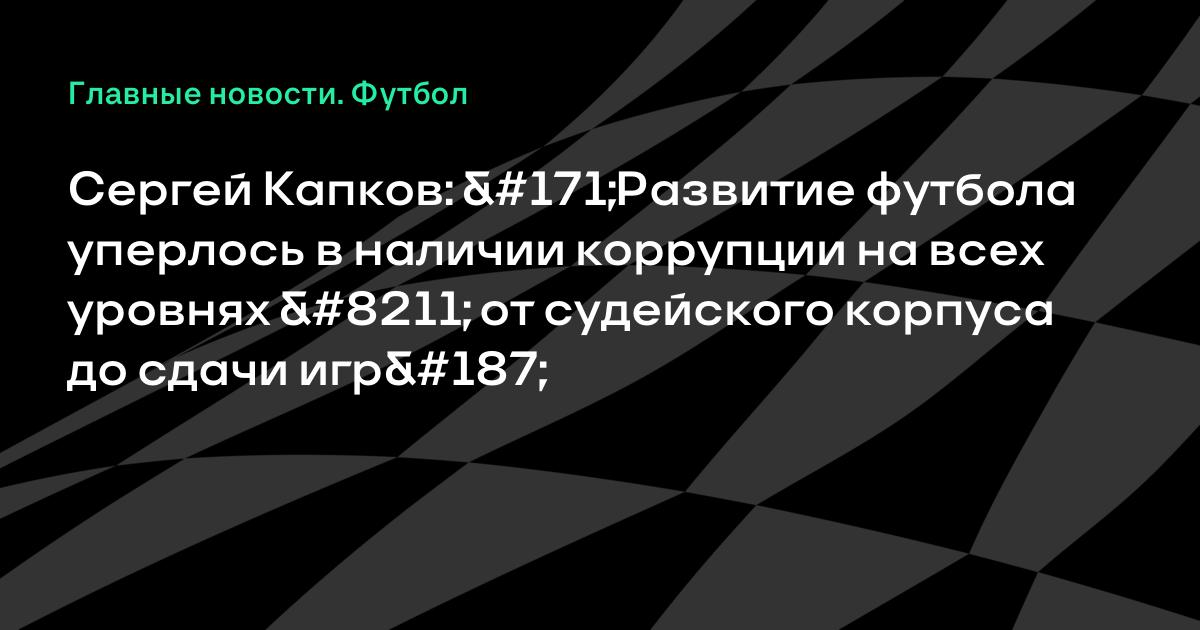 Сергей Капков: «Развитие футбола уперлось в наличии коррупции на всех уровнях – от судейского корпуса до сдачи игр»