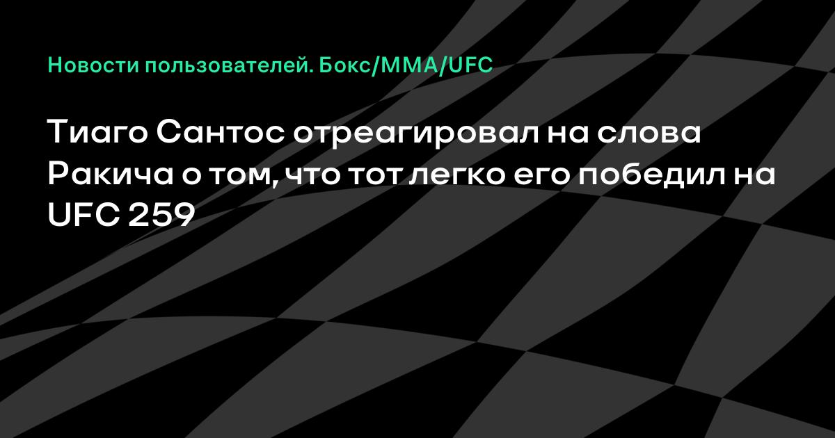 Бывшего претендента на титул UFC в полутяжелом весе Тиаго Сантоса задели слова его последнего соперника Александра Ракича, который в недавнем интервью заявил, что заслужил право подраться за звание чемпиона 205-фунтового дивизиона, поскольку одержал «легкую победу» над бразильцем на турнире UFC 259.