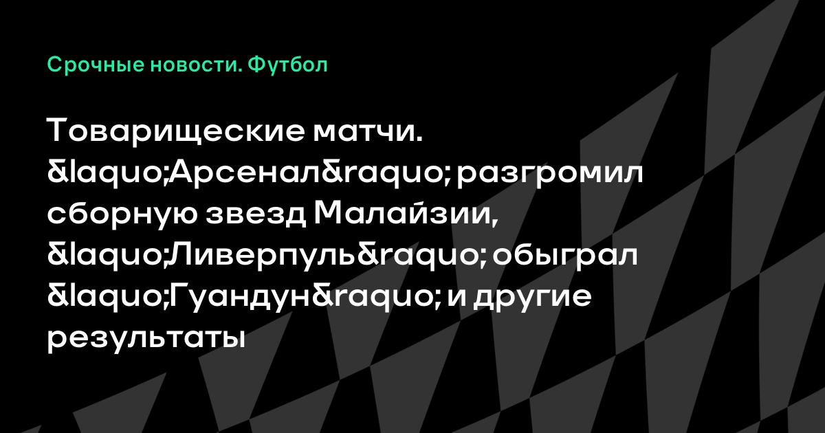 Товарищеские матчи. «Арсенал» разгромил сборную звезд Малайзии, «Ливерпуль» обыграл «Гуандун» и другие результаты