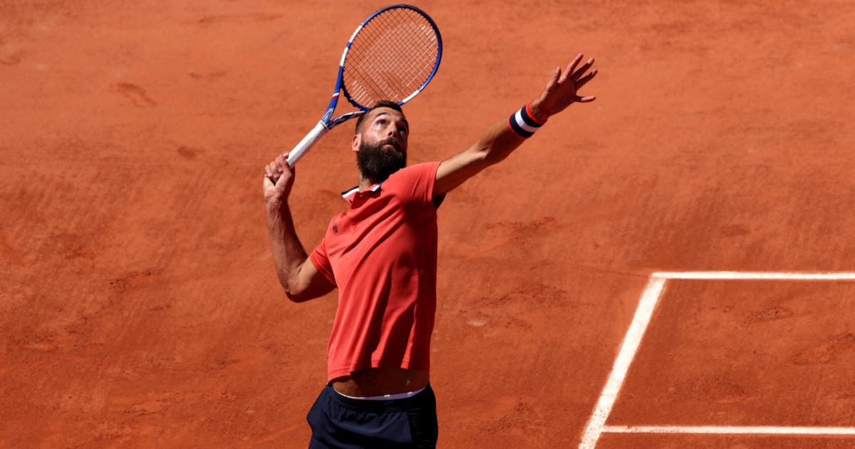 Sponsorless Benoit currently wearing Lacoste Roland-Garros ball boy’s polo — but without Lacoste’s logo. pic.twitter.com/C2wCglLhp4