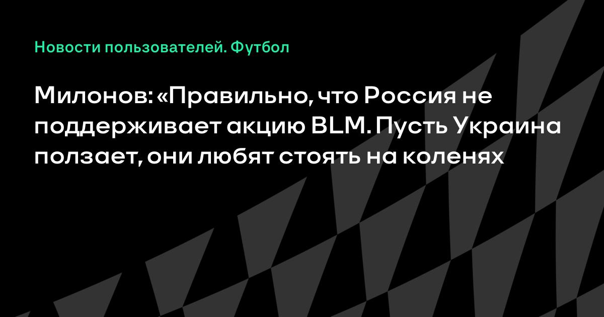 Мы темных парней не угнетали. Уверен, в нашей сборной никто даже не задумывался над тем, чтобы преклонить колено. А вот сборная Украины пускай ползает — они любят на коленках постоять», — сказал Милонов.