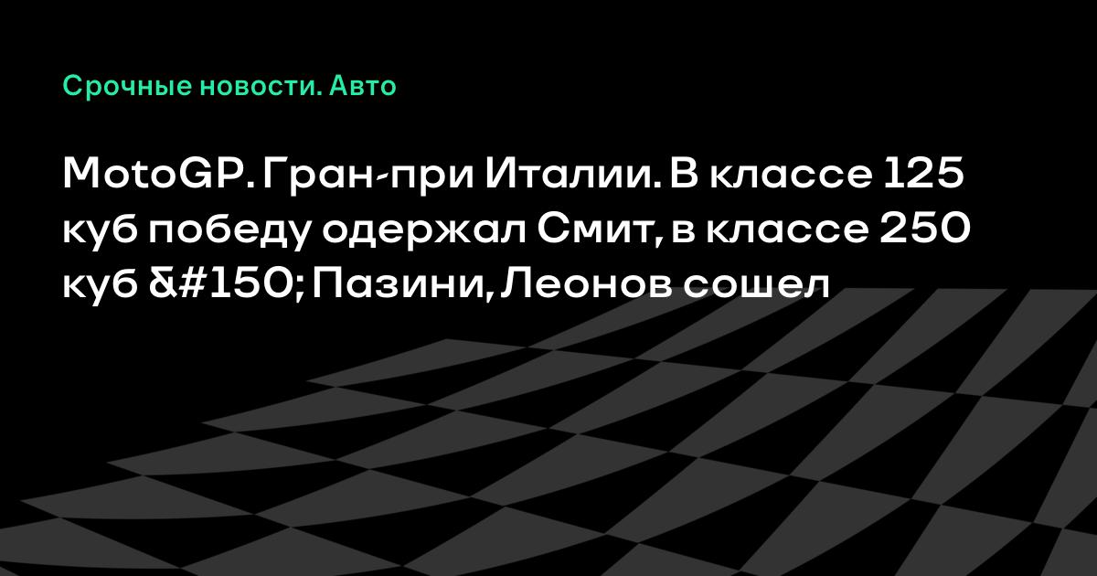 MotoGP. Гран-при Италии. В классе 125 куб победу одержал Смит, в классе 250 куб Пазини, Леонов сошел
