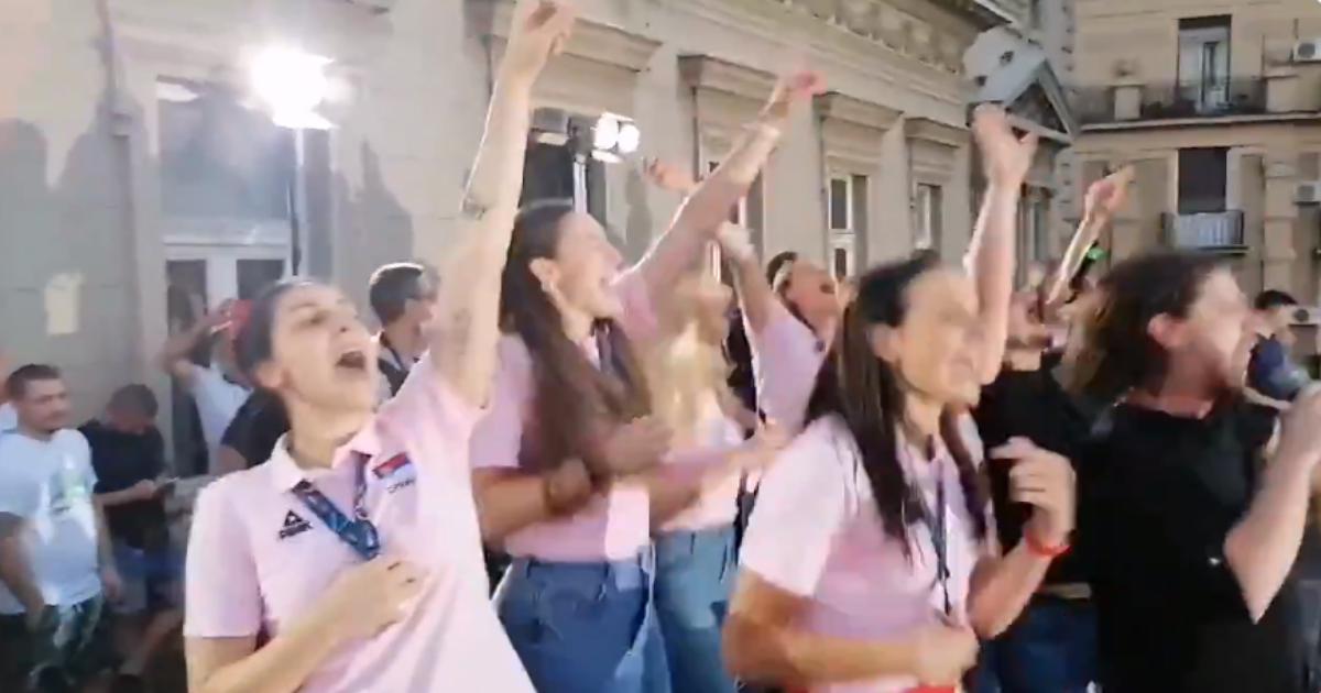 Женская сборная Сербии отпраздновала победу на чемпионате Европе вместе с болельщиками