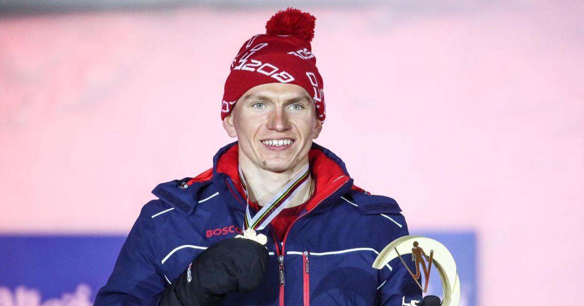 Таких кадров еще не было: Большунову вручили Кубок мира, он прыгал от счастья на пьедестале