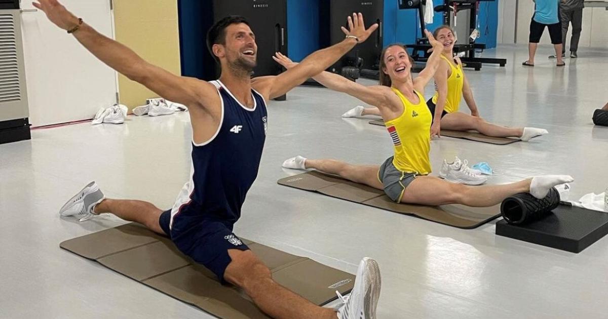 Джокович посидел на шпагате с бельгийскими гимнастками